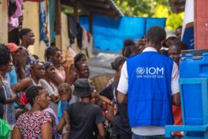 Le personnel de l’OIM interagit avec les résidents, s’assurant qu’ils ont accès aux informations...