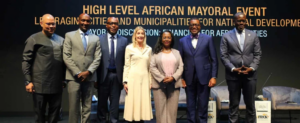 Le président de la BAD, Akinwumi Adesina (2e à partir de la droite), en...