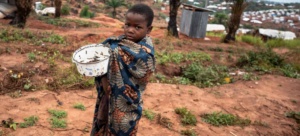 © UNICEF/Olivia Acland – Un enfant tient une casserole de criquets dans un camp...